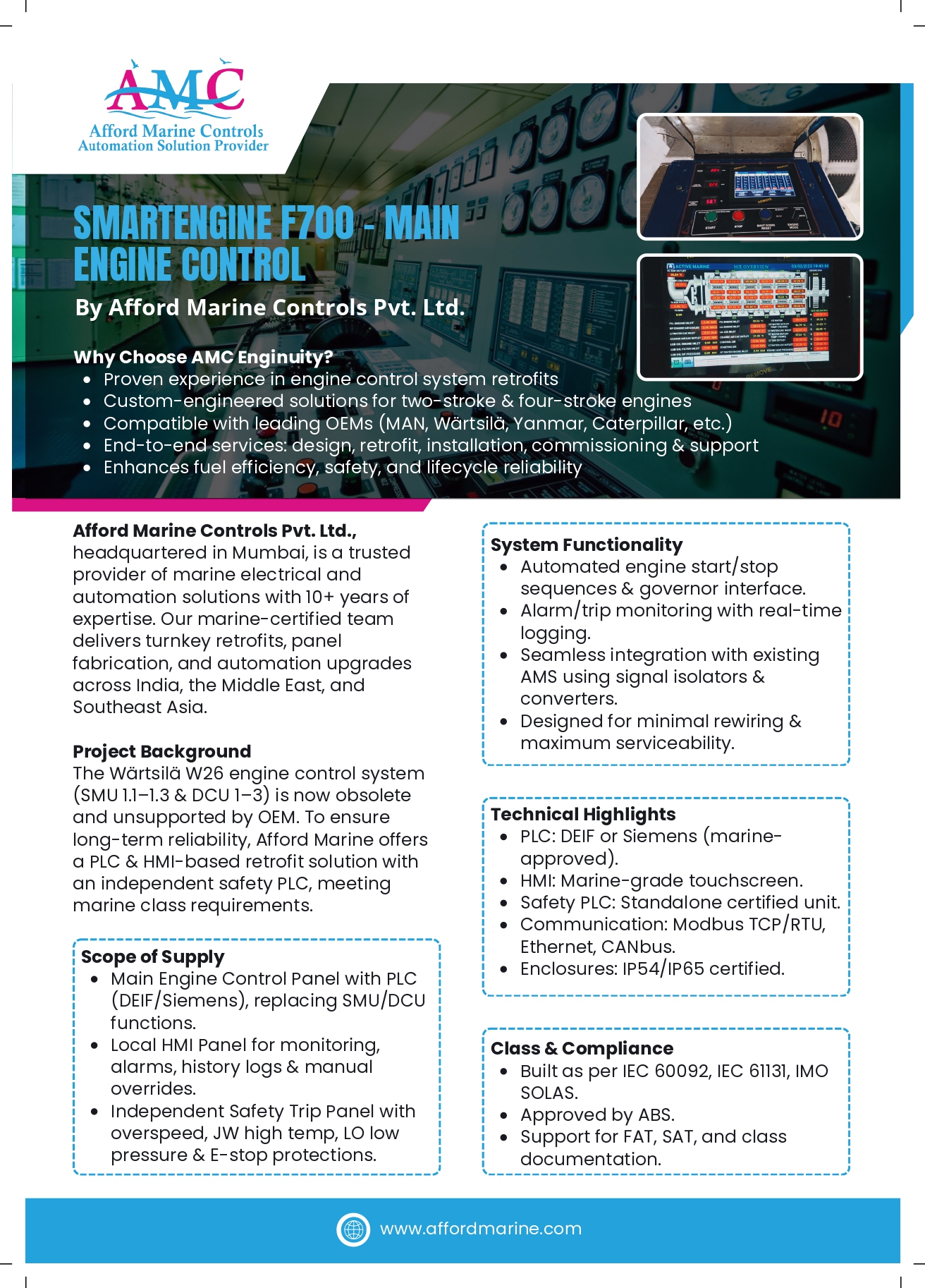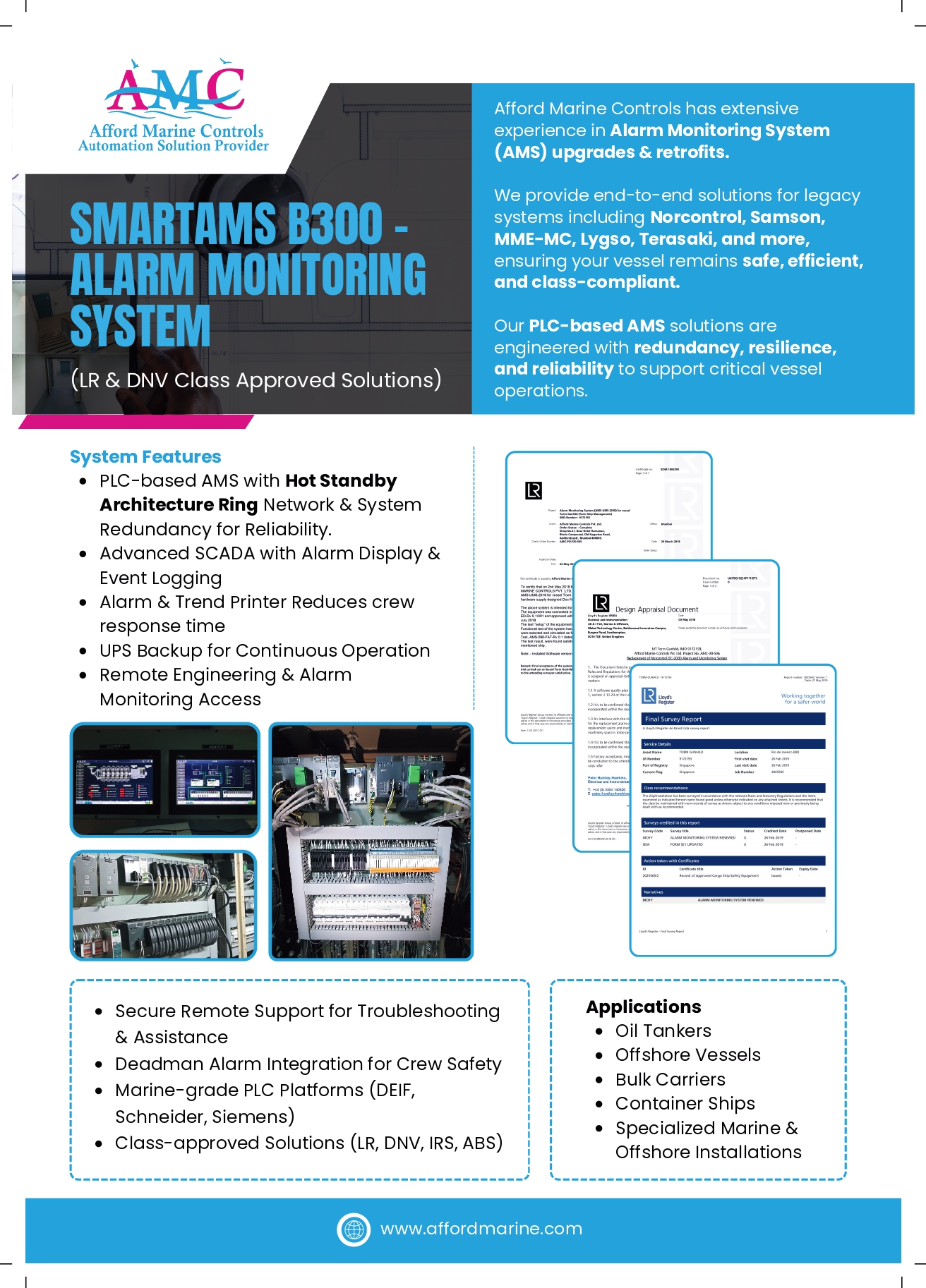 Afford Marine Controls delivers comprehensive class-compliant engineering and automation solutions.